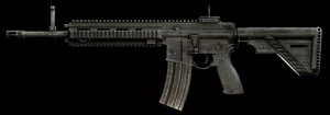 | HK 416A5 | ![]() | 5,56 x 45 mm OTAN | Semi‑autoAutomatique | 850 | Le HK416 A5 est une version plus développée du fusil d’assaut HK416 en calibre 5,56 x 45 OTAN. Les changements les plus remarquables comparés à la version précédente et aux autres AR du marché sont l’ajout d’un régulateur des gaz amélioré ne nécessitant pas d’outil pour permettre l’utilisation d’un réducteur de son, un boitier inférieur repensé, plus facile d’utilisation, permettant une utilisation complètement ambidextre de l’arme et assurant une meilleure compatibilité des chargeurs, ainsi que de nombreuses améliorations techniques pour maximiser la sécurité de l’opérateur, la fiabilité, la compatibilité des munitions et la résistance dans des conditions extrêmes sur le terrain. |