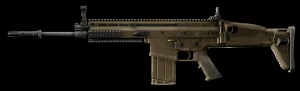 | SCAR-H | ![]() | 7,62 x 51 mm OTAN | Semi‑autoAutomatique | 600 | Le fusil d’assaut FN SCAR-H (Special Operations Forces Combat Assault Rifle – Heavy) chambré en calibre 7,62 x 51 mm OTAN, a été adopté par L’US SOCOM sous le nom de Mk 17. Il comprend une crosse en polymère rabattable et un canon Mil-Spec martelé à froid dont l’âme est chromée. Ses contrôles complétement ambidextres adaptent instantanément le SCAR à n’importe quel utilisateur et à n’importe quelle position de tir. Le rail forgé dans le boitier et les trois rails d’accessoires supplémentaires permettent d’ajouter une grande variété d’optiques, de viseurs électroniques, de lampes tactiques et de dispositifs lasers. Produit par la Fabrique Nationale Herstal. Modèle Flat Dark Earth. |