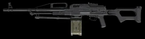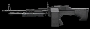 | M60E6 | ![]() | 7,62 x 51 mm OTAN | Automatique | 550 | Le M60E6 est un fusil-mitrailleur de calibre 7,62 x 51 mm, une version allégée du M60E4. Le M60 a été surnommé « The Pig » en raison de sa taille volumineuse et de ses défauts de conception. Malgré ses inconvénients, des variantes du M60 sont toujours utilisées dans certaines unités militaires. Produit par U.S. Ordnance. |