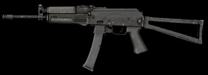 | AKS-74UB | ![]() | 5,45 x 39 mm | Semi‑autoAutomatique | 650 | Une version spéciale du fusil d’assaut AKS-74U, la version B (Besshumny – « Silencieuse ») est équipée d’origine d’un montage en queue d’aronde pour optique, d’un réducteur de son et d’une mire spécifiquement conçue pour tirer les munitions subsoniques. |