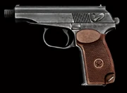 | PM (f) | ![]() | 9 x 18 mm Makarov | Semi-auto | 30 | Un PM semi-mythique avec canon long et filetage pour le montage d’un réducteur de son. Certains affirment que cette version provient d’une série limitée fabriquée en Bulgarie, d’autres insistent sur la RDA, et certains sont même enclins à y penser comme une fabrication artisanale. Comment a-t’il fini dans la région de Norvinsk, aucune âme vivante ne saurait le dire. |